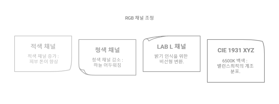 LAB 색공간의 L 채널(명도)을 독립적으로 다루면 색수차 영향을 제거하고 명암 대비를 극대화할 수 있습니다. 이는 인물 사진에서 피부톤 보존에 특히 유용합니다.
