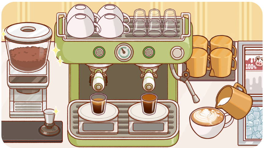 - 에스프레소 샷 추출, 우유 스티밍, 라떼아트 등 실제 바리스타의 작업을 체험할 수 있습니다.