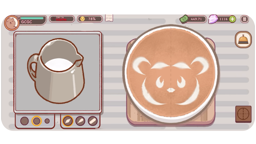 특히, 손님들이 애매모호한 힌트를 통해 음료를 주문하기 때문에 관찰력과 센스가 요구됩니다. 예를 들어, “뜨겁고 부드러운 음료”라는 주문은 라떼를 의미하며, 이를 정확히 만들어 제공해야 합니다.