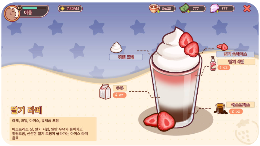 - 장르: 커피숍 운영 타이쿤 시뮬레이션