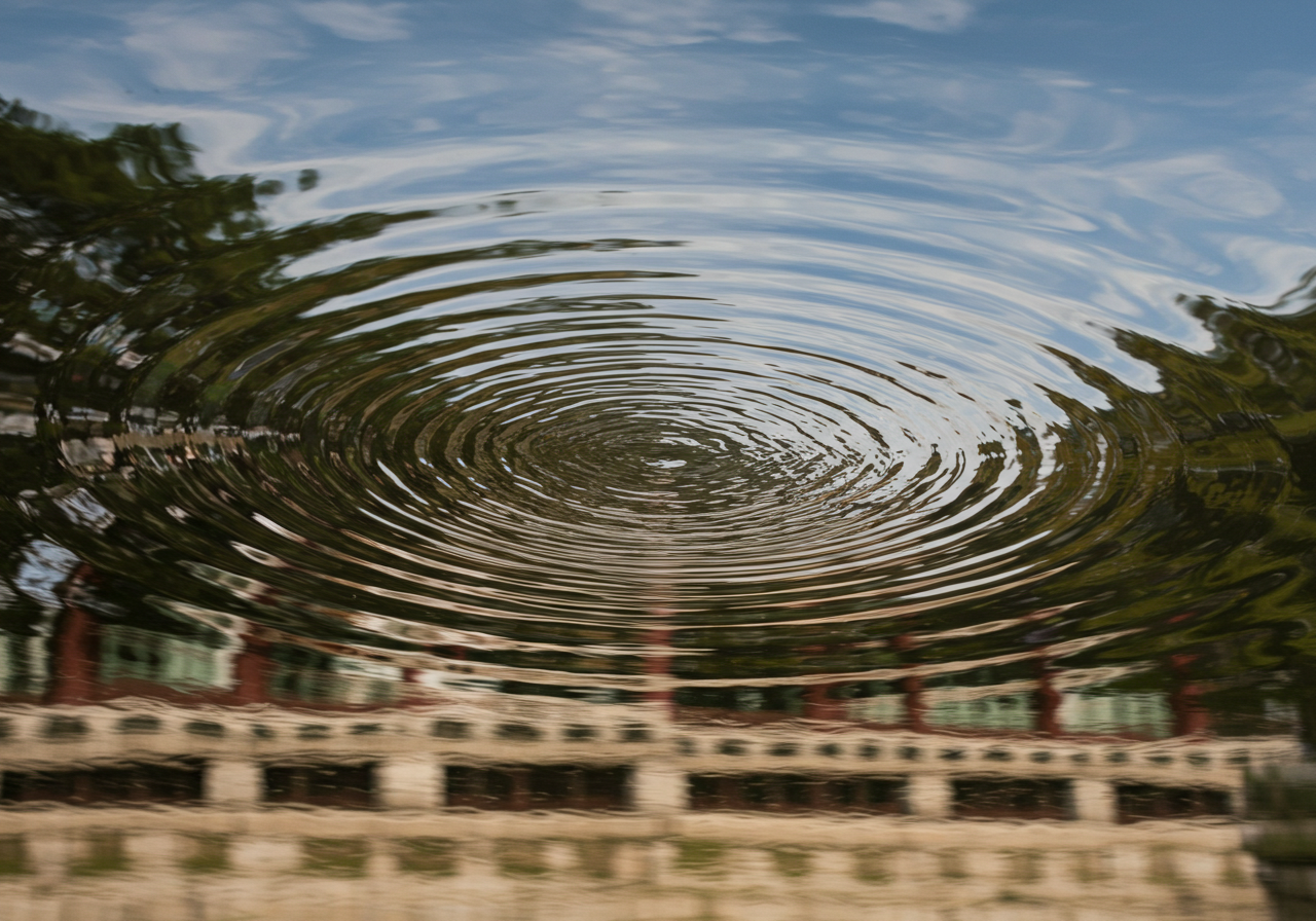 - 고즈넉한 연못과 주변 정자가 한 폭의 그림 같은 배경을 제공합니다.