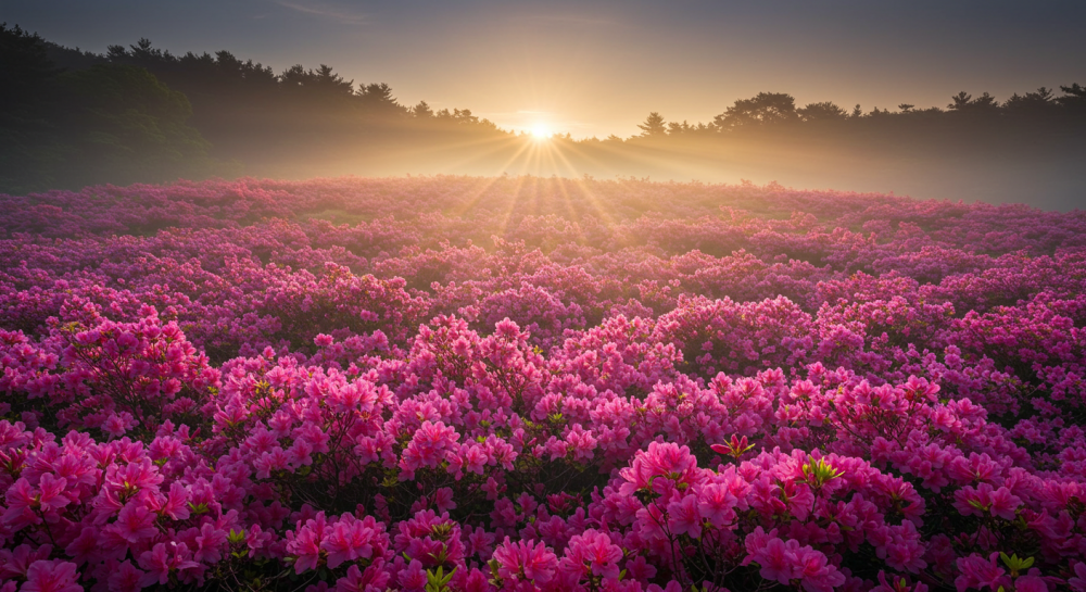 황매산 철쭉의 하이라이트! 드넓은 철쭉 평원을 배경으로 동화 같은 사진을 남겨보세요. 특히 아침 일찍 방문하면 몽환적인 분위기를 더할 수 있답니다. 좋은 사진을 위해서는 편안한 신발과 활동성 좋은 옷차림은 필수겠죠?